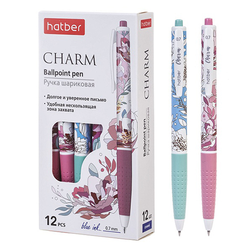 Ручка шариковая автоматическая " Hatber " Charm (Шарм) синяя 0,7мм, чернила на масляной основе, цветной пластиковый корпус, картонная упаковка