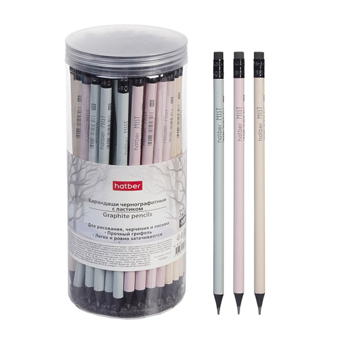 Карандаш ч/гр " Hatber " Mist НВ с ластиком, ассорти, круглый, заточенный, пластиковая туба