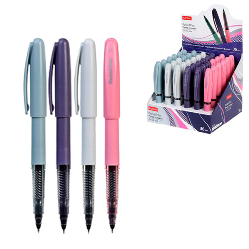 Ручка гелевая " Hatber " Pocket черная 0,5мм, толщина письма 0,25мм, игольчатый пишущий узел, цветной пластиковый корпус, дисплей