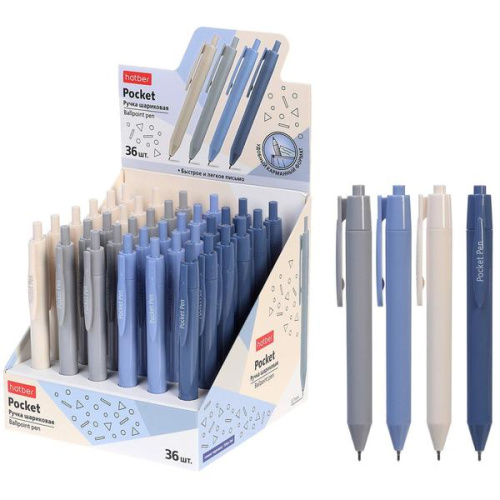 Ручка шариковая автоматическая " Hatber " Pocket синяя 0,7мм, ассорти, цветной пластиковый корпус, картонный мини-дисплей