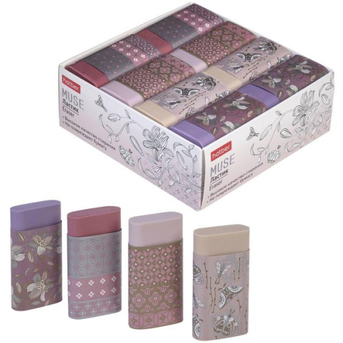 Ластик " Hatber " PVC Muse 50*24*12мм, ассорти, картонный держатель, картонный дисплей