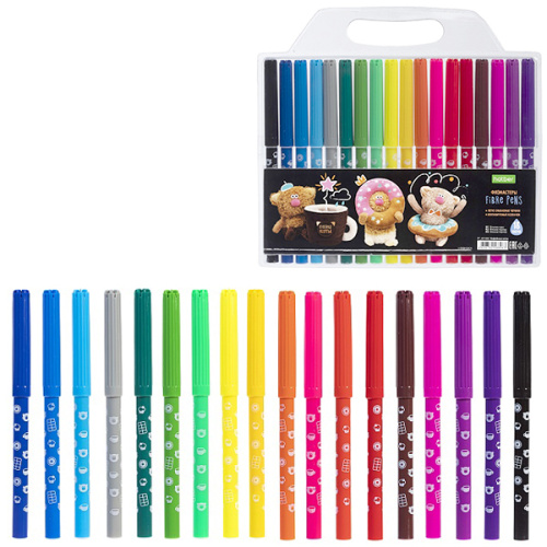 Фломастеры " Hatber " ECO Кофейные коты 18цв круглые, вентилируемый колпачок, блистер, европодвес