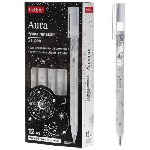 Ручка гелевая " Hatber " Aura белая 0,8мм, прозрачный пластиковый корпус, картонная упаковка