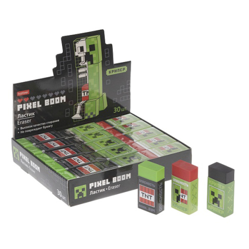 Ластик " Hatber " Пиксель Бум, ассорти, 30шт, картонный держатель, картонный дисплей