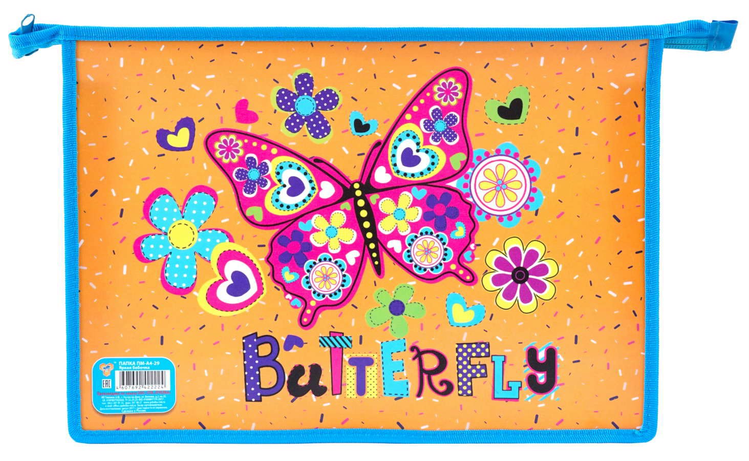 Папка для тетрадей пластик молния сверху А4 1отд. Яркая бабочка ПЧЕЛКА ПМ-А4-29