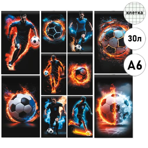Блокнот МАЛЫЙ ФОРМАТ А6 30л " Lamark " Крутой футбол, на скобе, клетка, обложка - мелованный картон, ВД-лак, 10 дизайнов (без возможности выбора дизайна), 102*162мм