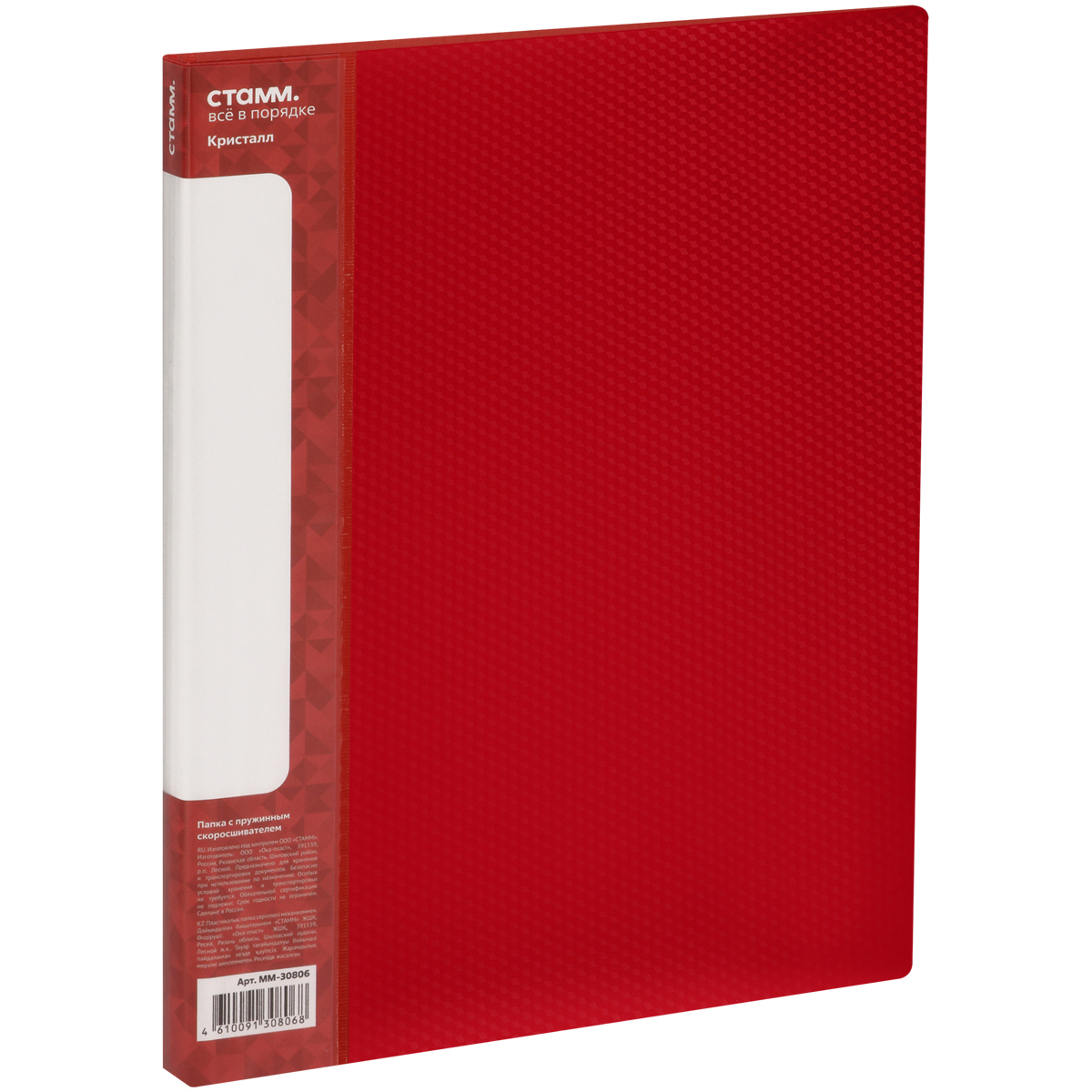 Папка c пружинным скоросшивателем СТАММ "Кристалл" А4, 17мм, 700мкм, пластик, красная