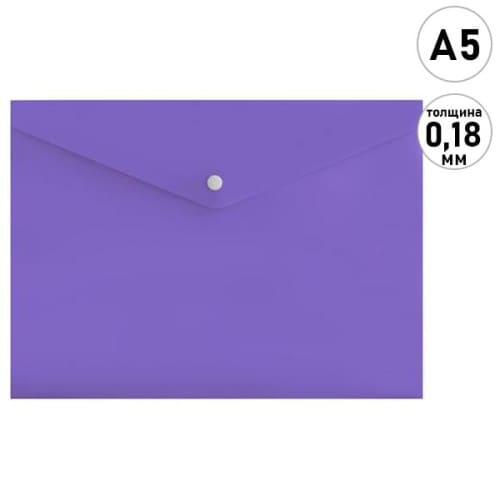 Папка на кнопке МАЛЫЙ ФОРМАТ А5 " KWELT " фиолетовая, пластик 0,18мм, непрозрачная