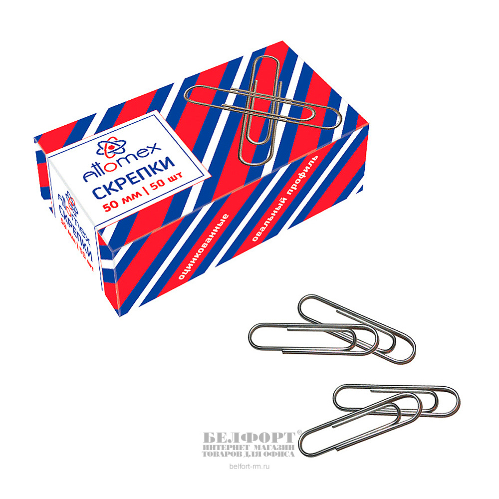 Скрепки " Attomex " 50мм оцинкованные 50шт картонная коробка