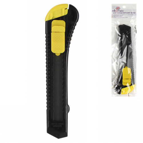 Нож канцелярский " Attomex " 18мм, пластиковый корпус, ассорти, ручная блокировка лезвия, блистер, европодвес
