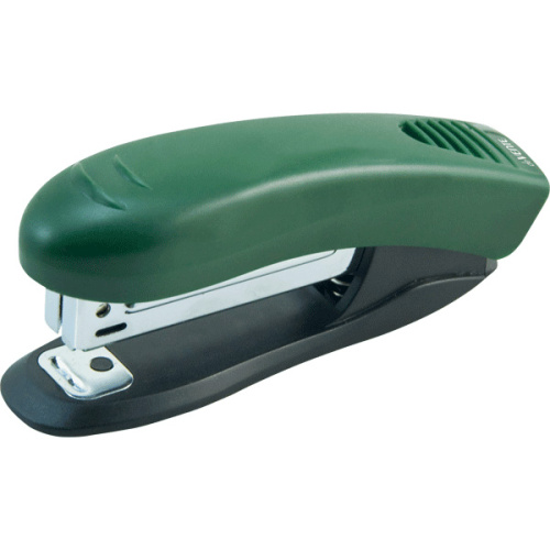 Степлер №10 на 10л " deVente " Stripe 100скоб пластиковый, встроенный антистеплер, один режим скрепления скоб, глубина закладки бумаги 43мм, металлический механизм подачи скоб, темно-зеленый, картонная упаковка