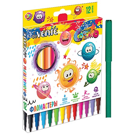 Фломастеры " deVente " Cosmo 12цв круглые, вентилируемый колпачок, картонная упаковка, европодвес