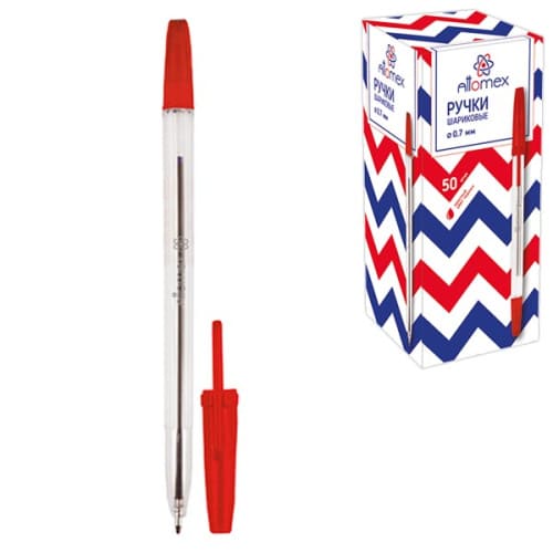 Ручка шариковая " Attomex " красная 0,7мм, толщина письма 0,3мм, прозрачный корпус, колпачок в цвет чернил, картонная упаковка