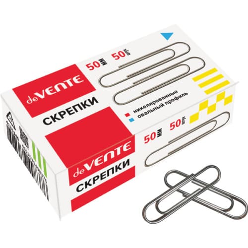 Скрепки " deVente " 50мм никелированные 50шт картонная коробка