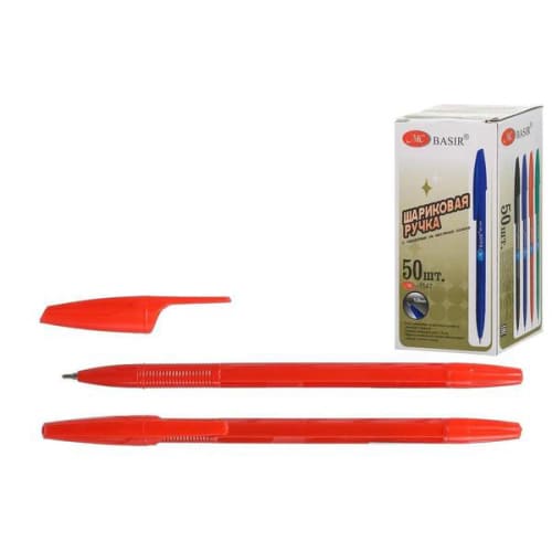 Ручка шариковая " Basir " красная 1,0мм, толщина письма 0,5мм, рифленый держатель, чернила на масляной основе, цвет корпуса- красный