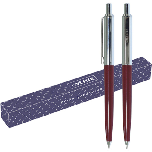 Ручка подарочная шариковая автоматическая " deVente " синяя, 1,0мм, цвет корпуса- красный, материал корпуса- металл, клип из хромированной нержавеющей стали, подарочная упаковка
