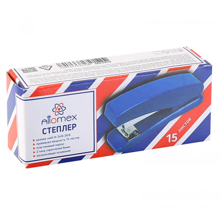 Степлер №24/6 на 15л " Attomex " 80скоб пластиковый, два режима скрепления скоб, глубина закладки бумаги 50мм, металлический механизм подачи скоб, синий, картонная упаковка