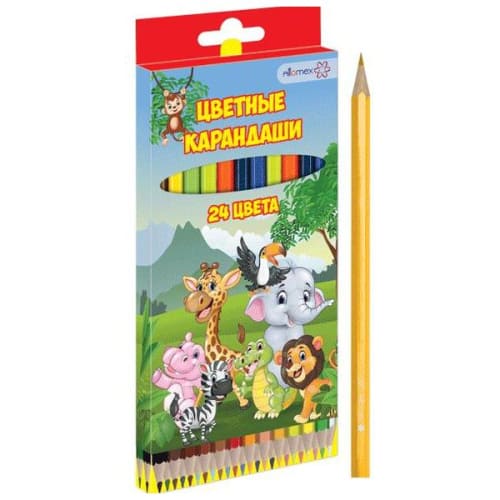 Карандаши цветные деревянные Zoo 24цв " Attomex " М шестигранные, картонная упаковка, европодвес