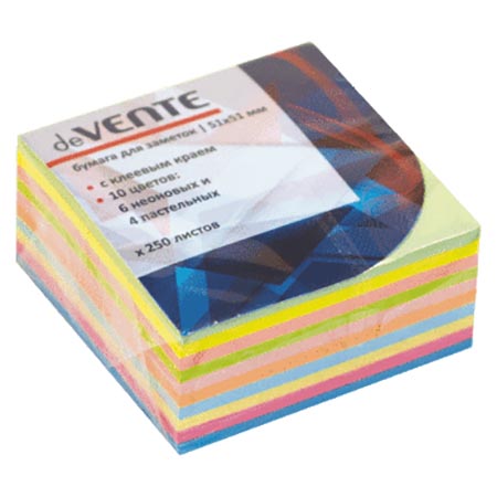 Блок самоклеящийся (стикеры) 51*51мм 250л неон, пастель, 10 цветов, ассорти " deVente "