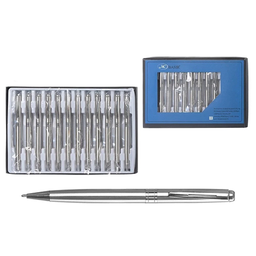 Ручка шариковая " Basir " синяя 0,7мм металлическая, поворотный механизм, корпус серебристого цвета, 10013160/140322/3152552