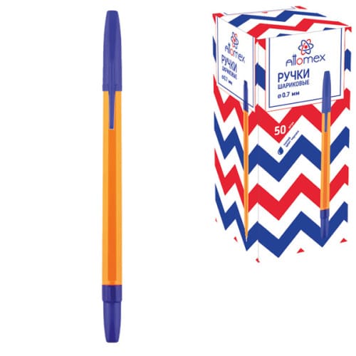 Ручка шариковая " Attomex " синяя 0,7мм, толщина письма 0,3мм, желтый корпус, колпачок в цвет чернил