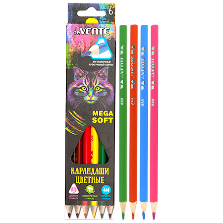 Карандаши цветные деревянные Trio Mega Soft 06цв " deVente " 4М трехгранные, картонная упаковка, европодвес