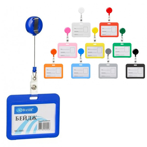 Бейдж " Basir " 85*54мм с рулеткой-ретрактором с вытяжной нитью, горизонтальный, цветной ассорти (без возможности выбора цвета), пластик, 10013160/130123/3014086