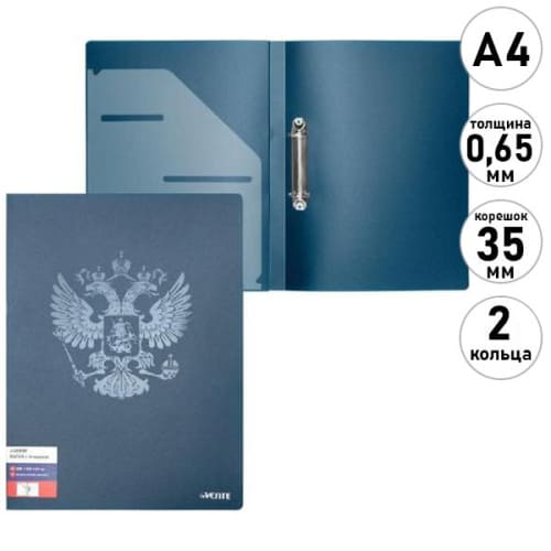 Папка 2 кольца " deVente " А4 35мм Герб, темно-синий, пластик 0,65мм, внутренний карман 0,16мм, на 250 листов бумаги или 50 вкладышей