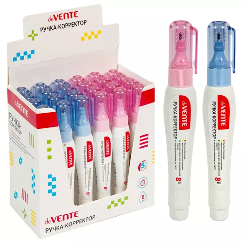 Корректирующая ручка " deVente " 8мл, металлический наконечник, на спиртовой основе, морозоустойчивая, быстросохнущая, картонный дисплей