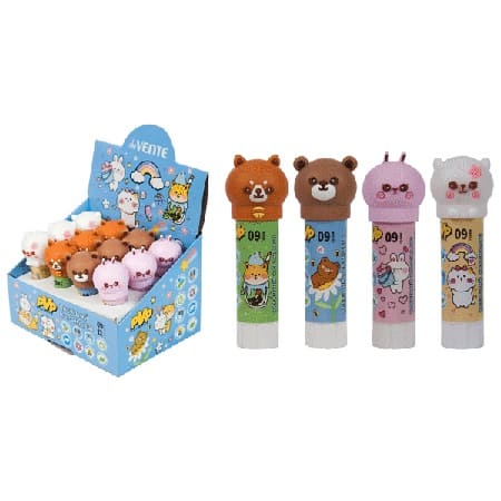 Клей-карандаш " deVente " Funny animal 9гр, основа PVP, быстросохнущий, с фигуркой на колпачке, 4 дизайна, картонный дисплей