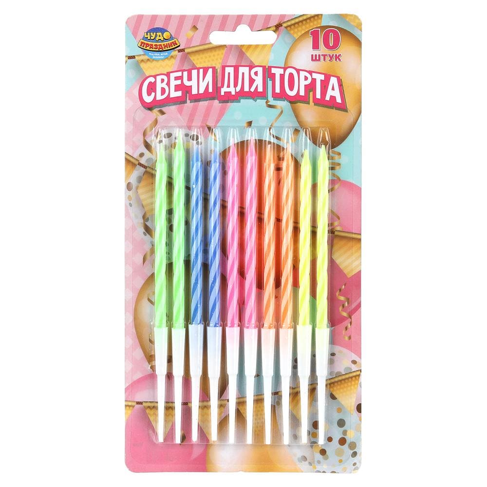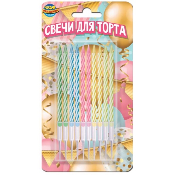 Свечи для торта с держателем пять цветов, 10шт, блистер, шары ЧУДО ПРАЗДНИК в кор.12*24наб