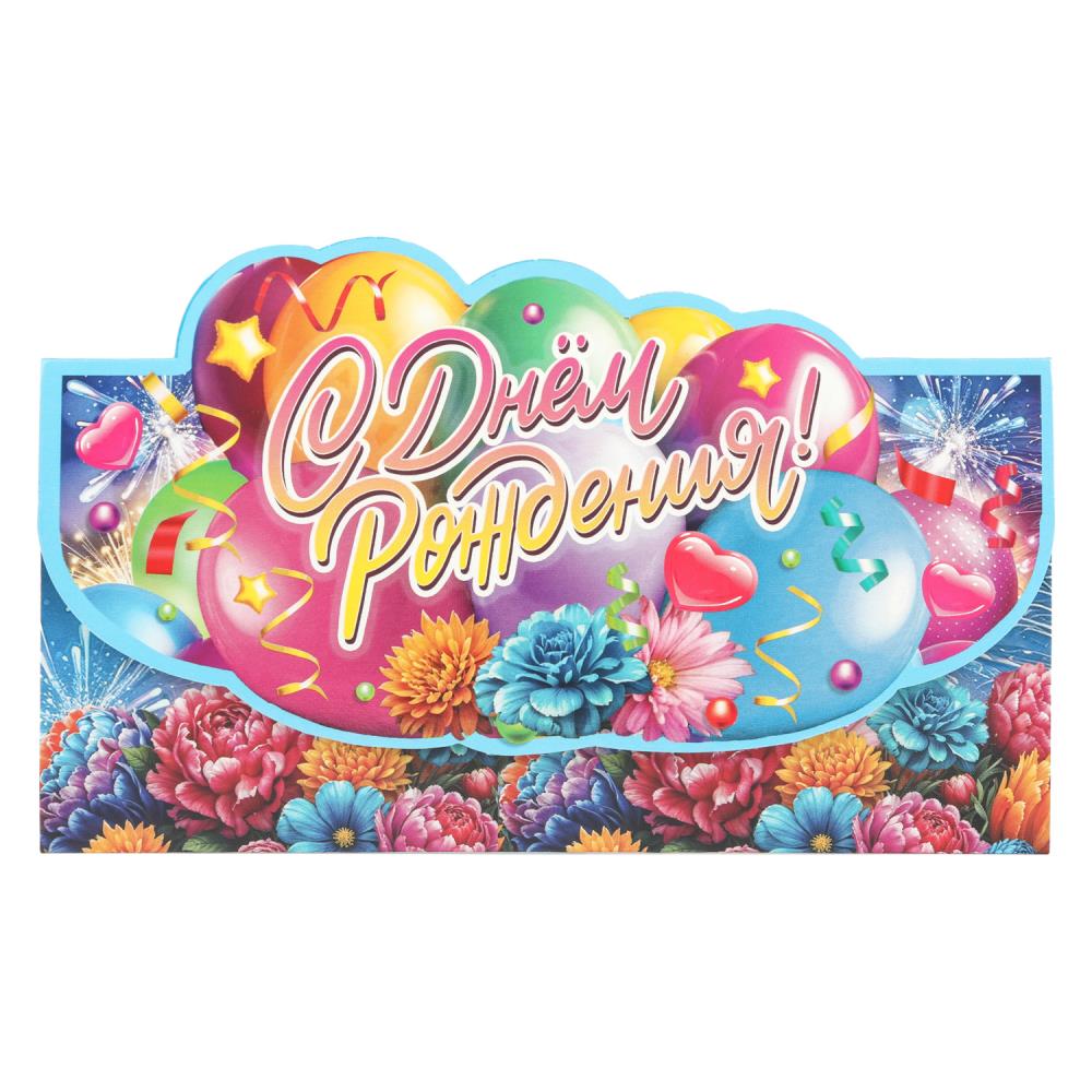 Конверт для денег шарики, фигурный, с днем рождения ЧУДО ПРАЗДНИК уп-10шт в кор.100уп