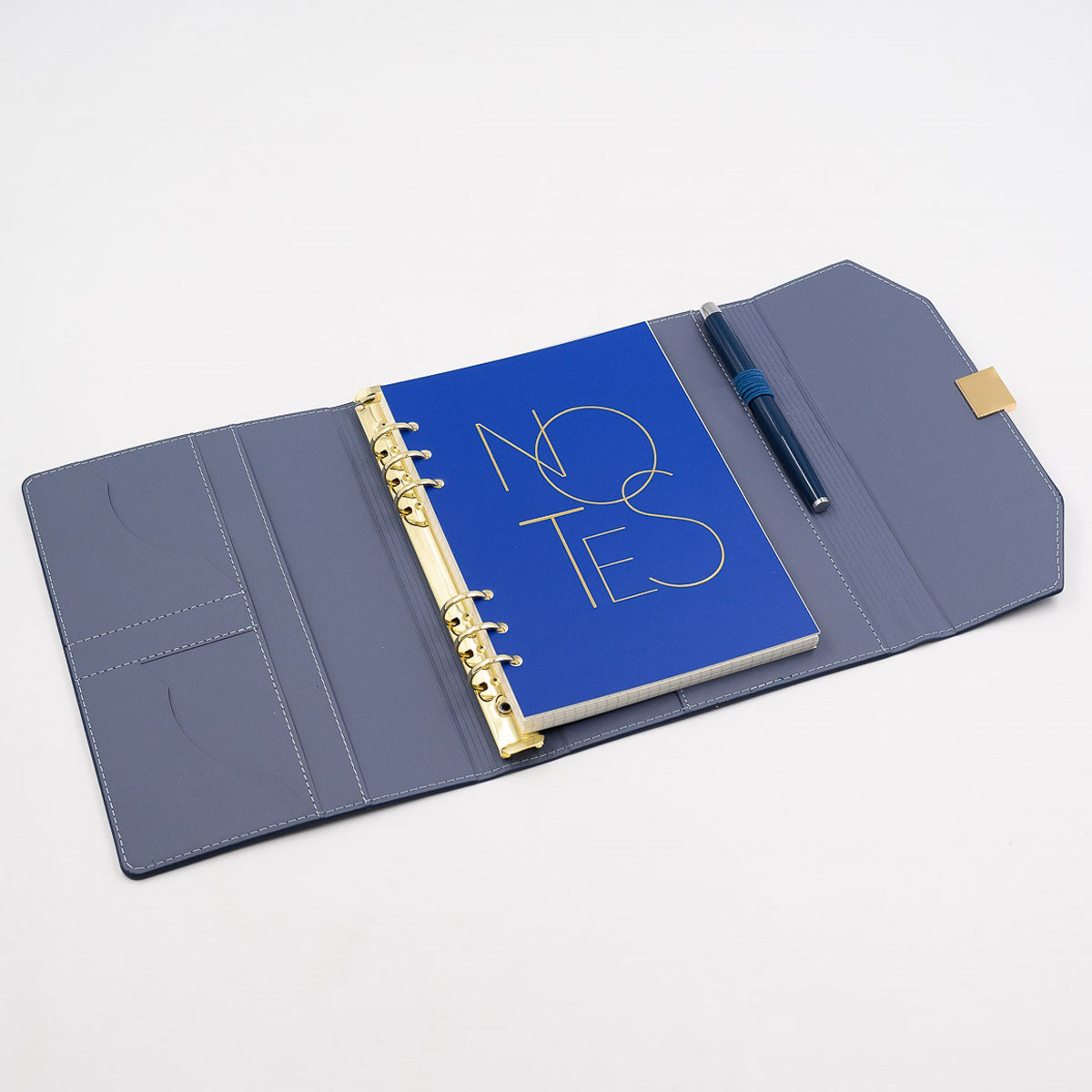 Ежедневник А5 иск.кожа на кольцах+ручка 90л BUSINESS СИНИЙ ЛЕД подар.упак. арт.12210 (1/20шт)