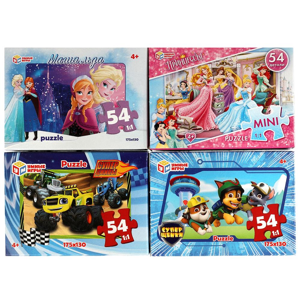 Микс. Пазлы классические в коробке. Пазл 54 деталей. Умные игры в уп.32шт в кор.8уп