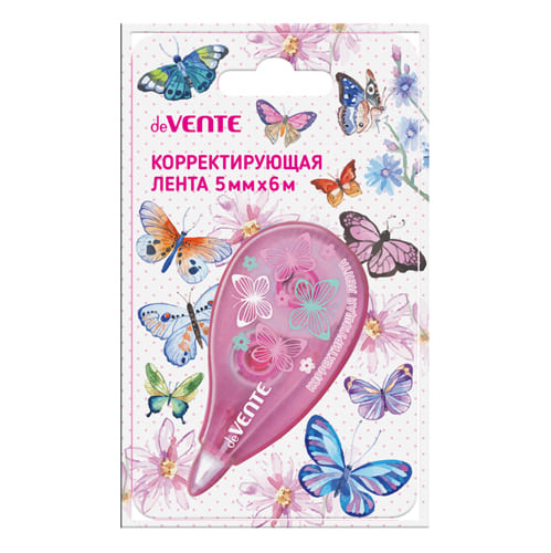 Корректирующая лента " deVente " Butterfly 5мм*6м, розовый, регулировка натяжения ленты, картонный блистер, европодвес