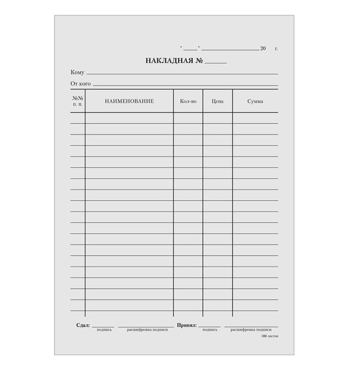Бланк бух. типогр. Накладная, А5 (134х192мм), СКЛЕЙКА 100шт, 130011