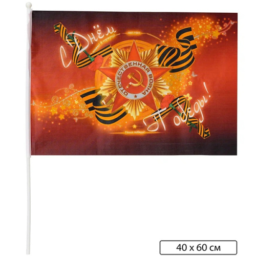 Флаг 9 мая " Basir " 40*60см на палочке, искусственный шелк