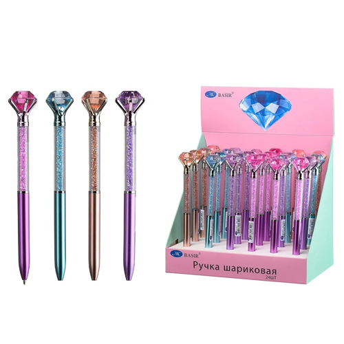 Ручка шариковая автоматическая " Basir " Diamond МС-6670, синяя, 0,5мм, поворотный механизм, металлическая, наконечник-крупный кристалл, ассорти