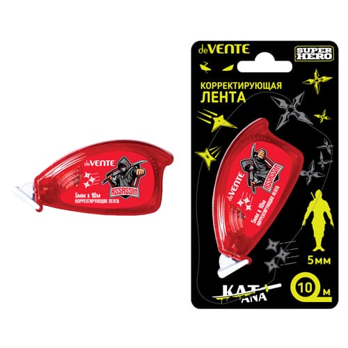 Корректирующая лента " deVente " SuperHero, красный, 5мм*10м, картонный блистер, европодвес
