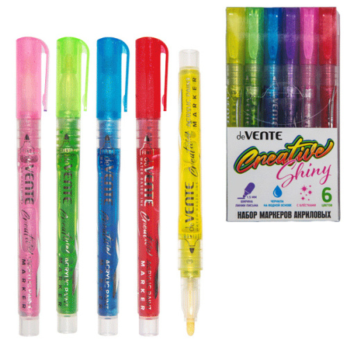 Набор маркеров акриловых Shiny, 6цв, " deVente " Hobby creative, пулевидный наконечник, в пластиковом боксе