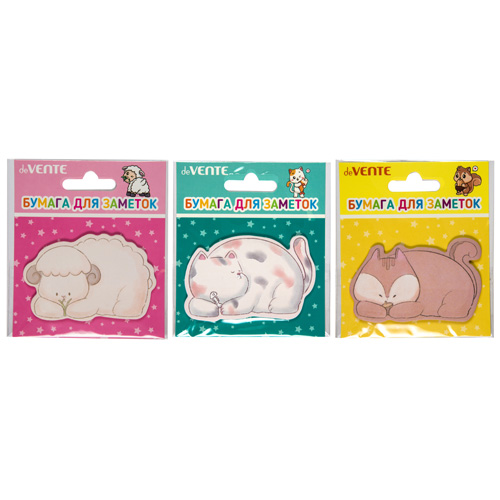 Блок самоклеящийся (стикеры) 71*46мм 20л Cat and Fox ассорти, 3 дизайна " deVente "