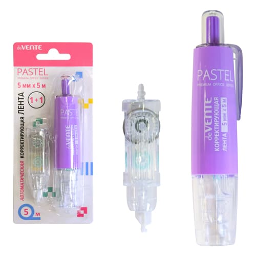 Корректирующая лента " deVente " Pastel 5мм*5м, полупрозрачный сиреневый корпус, фронтальный аппликатор, в комптекте сменный картридж, картонный блистер, европодвес