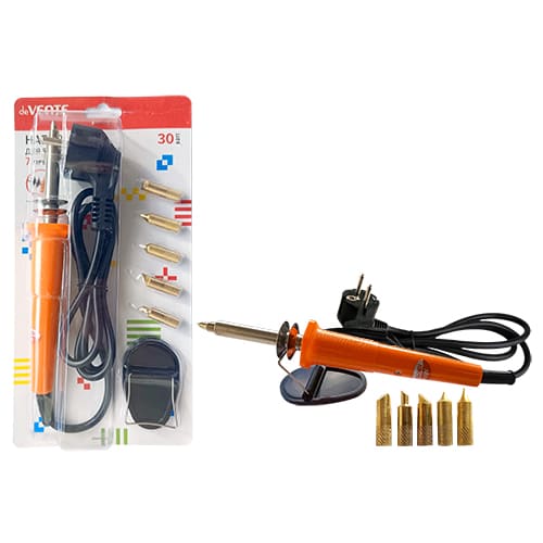 Набор для выжигания и пайки " deVente " Pyrograph, электрический, в комплекте: прибор для выжигания, подставка, 5 насадок, мощность 30 Вт, шнур 1,1 м