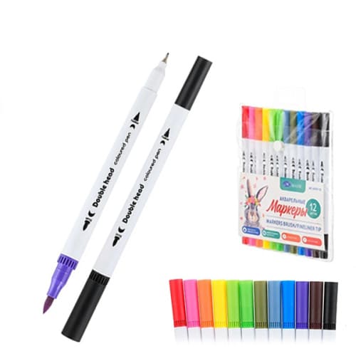 Набор аквамаркеров " Basir " 12 цветов, двухсторонние, наконечник пулевидный 0,4мм, кисть 1-4мм, вентилируемый колпачок, пластиковая упаковка