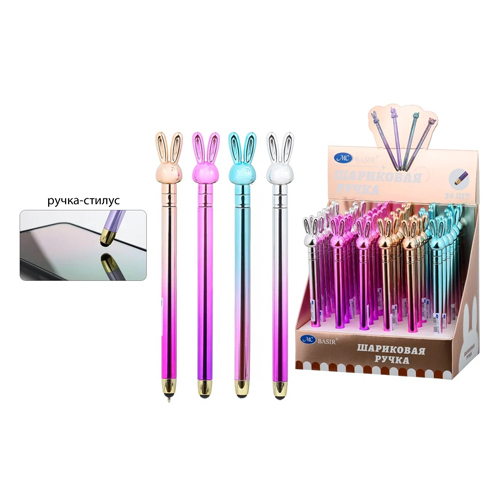 Ручка шариковая автоматическая " Basir " Зайчик, синяя, 0,5мм, поворотный механизм, стилус, металлическая, ассорти