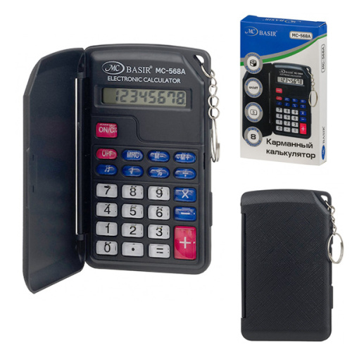 Калькулятор карманный 8 разрядов " Basir " МС-568А, 102*62*140мм, батарейка, черный