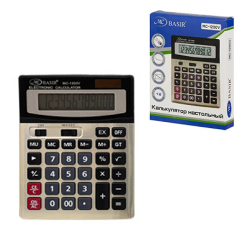 Калькулятор настольный 12 разрядов " Basir " МС-1200V, 188*147*33мм, двойное питание, черный