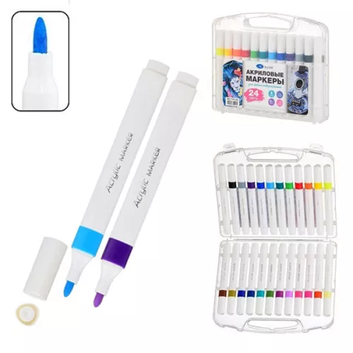 Набор маркеров акриловых " Basir " 24цв, 4мм, пулевидный наконечник, в пластиковом боксе