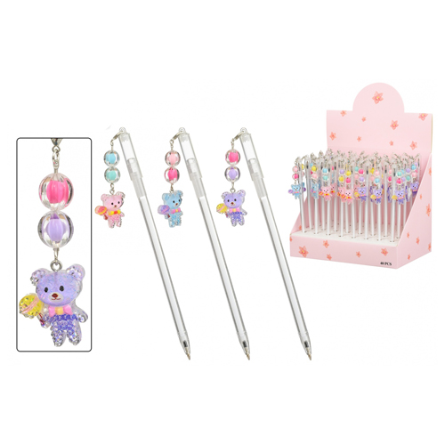 Ручка шариковая " Basir " Медвежонок, синяя, 0,5мм, толщина письма 0,25мм, прозрачный пластиковый корпус, съемный брелок на цепочке- бусинки с фигуркой