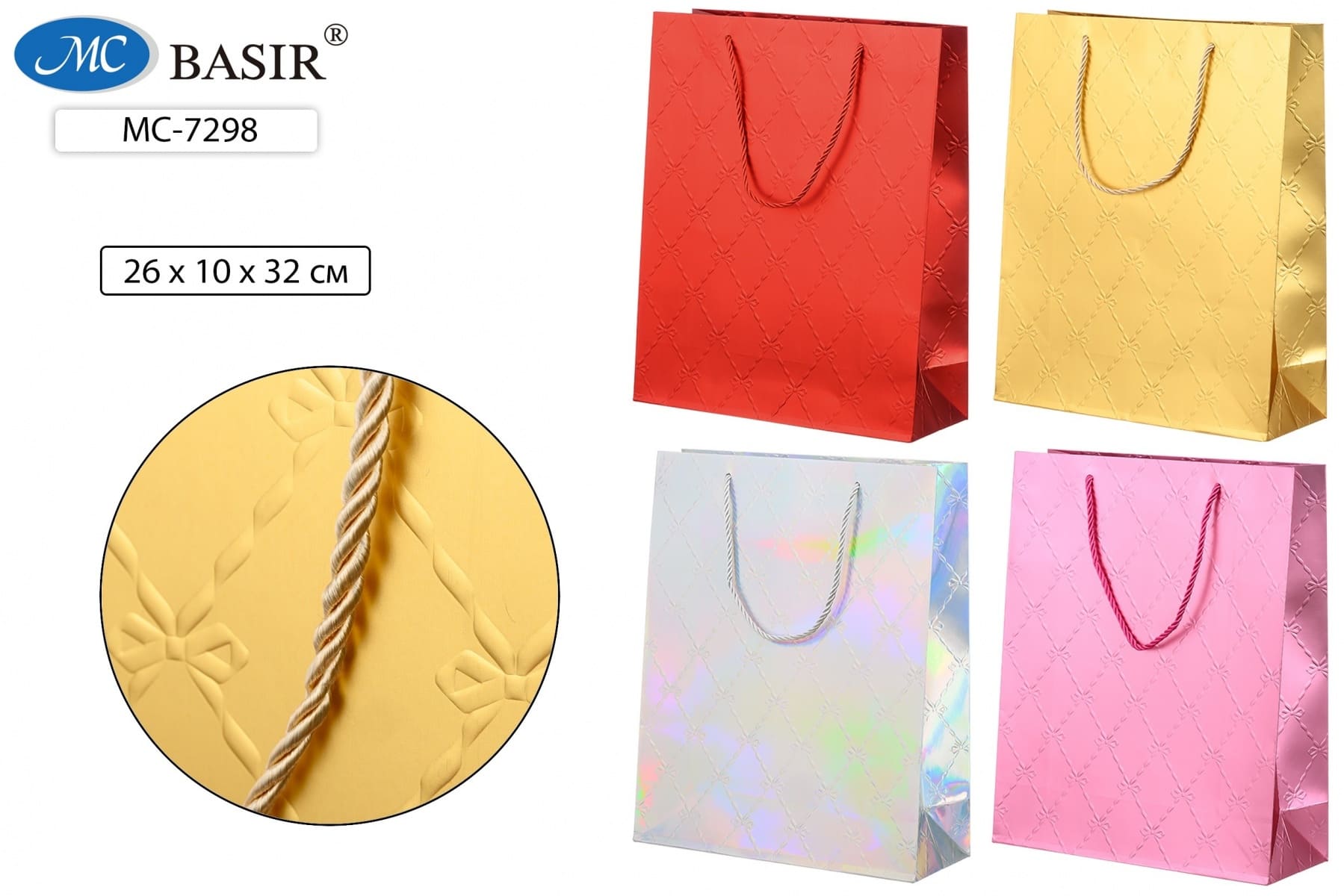Пакет бумажный " Basir " 26*32*10см Голография, ассорти (без возможности выбора цвета), ламинированный, голография
